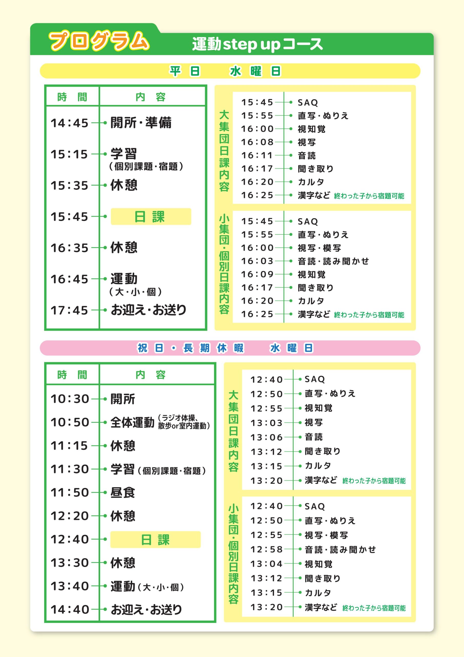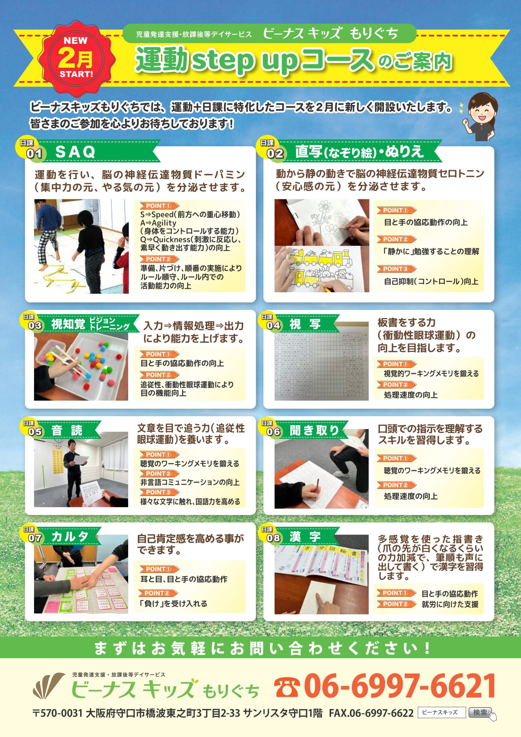 ビーナスキッズ 運動ステップアップコース告知チラシ