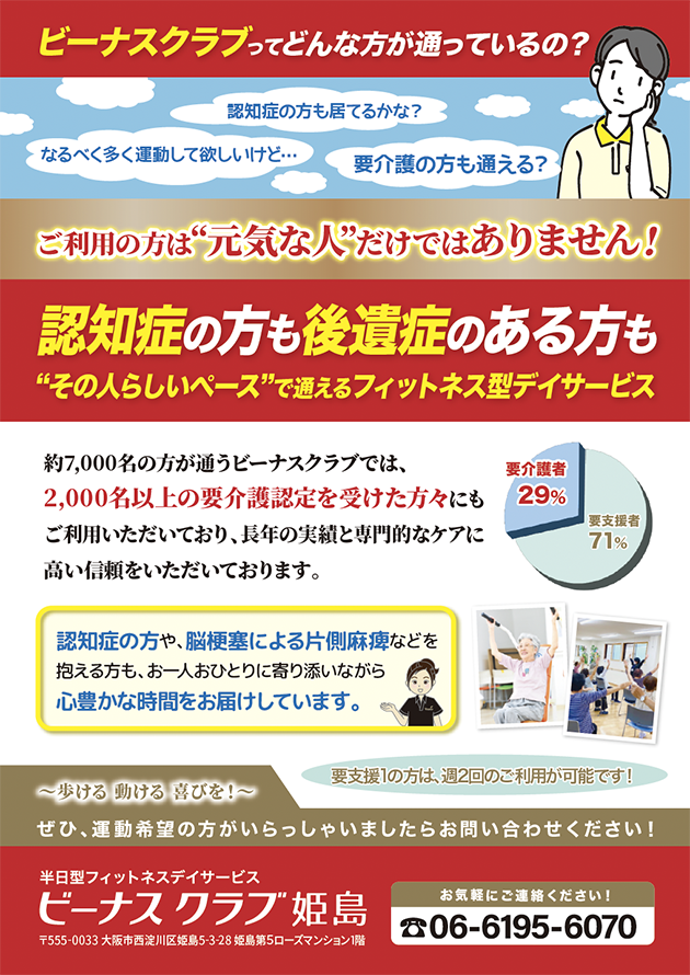 要介護の方にも、安心してご利用いただけることを伝えるチラシです。